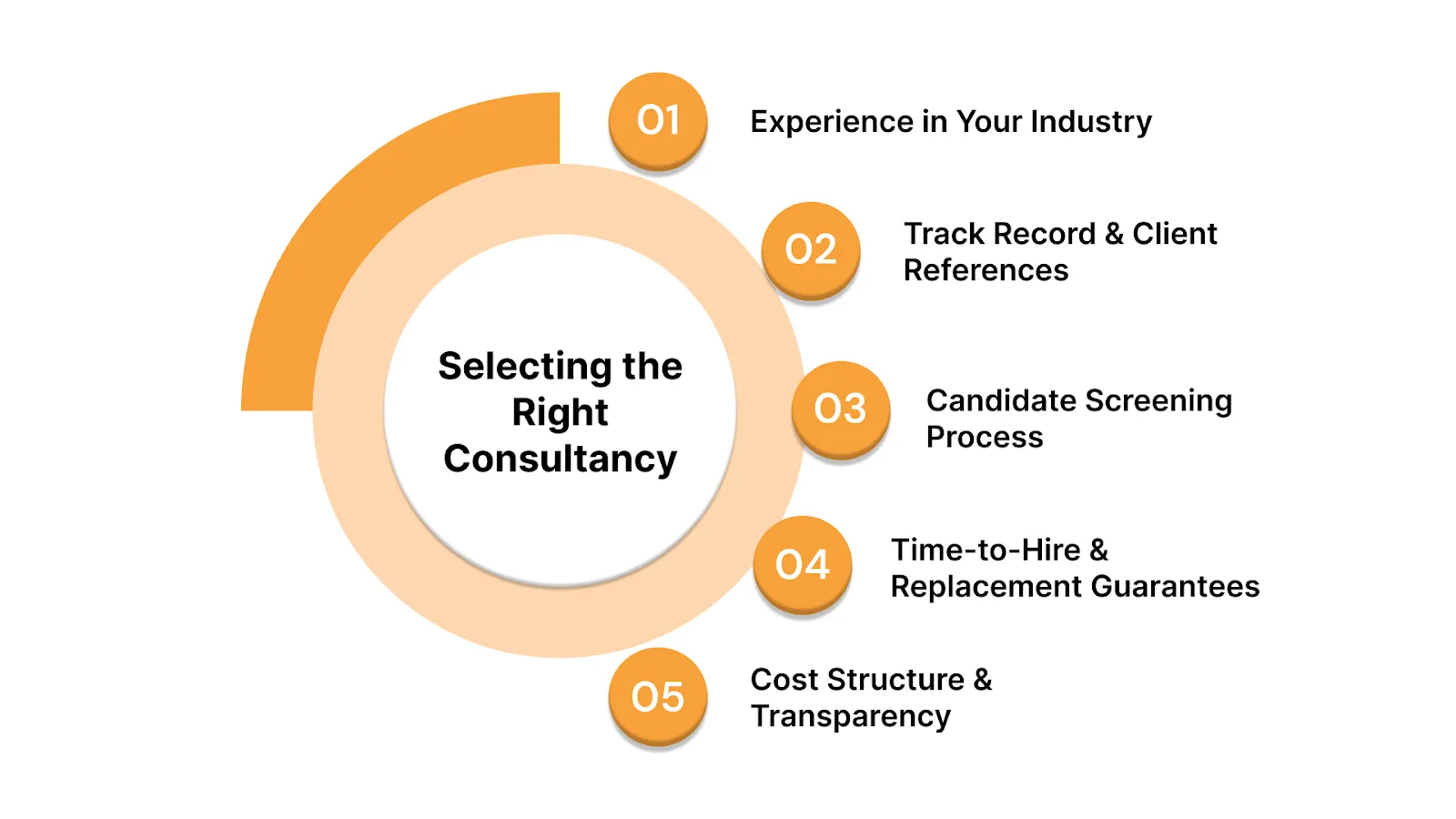 - When selecting a consultancy, prioritise their industry expertise, candidate screening process, turnaround time, and ability to offer flexible, cost-effective hiring solutions tailored to your specific business needs.